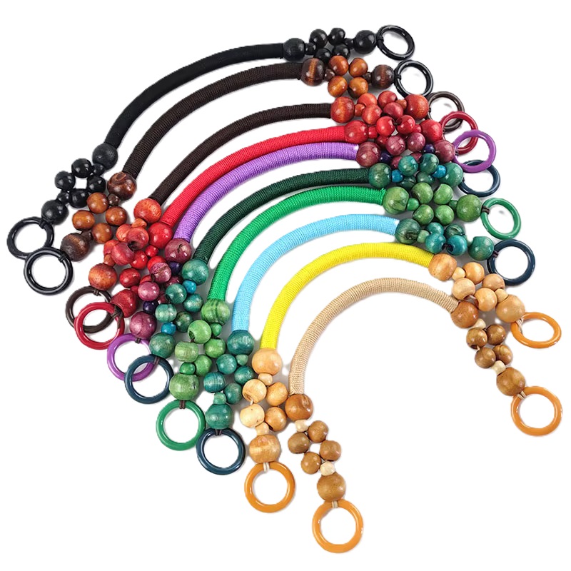 1 Taschengriff mit Holzperlen 37cm 580 - schwarz