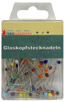 Stecknadeln mit bunten Glasköpfen.