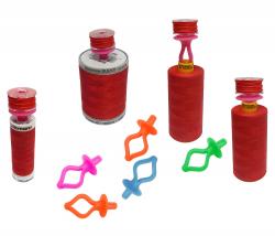 Die Bobbini´s sind aus flexiblem Silikon Gummi und passen daher auf fast alle Garnrollen.