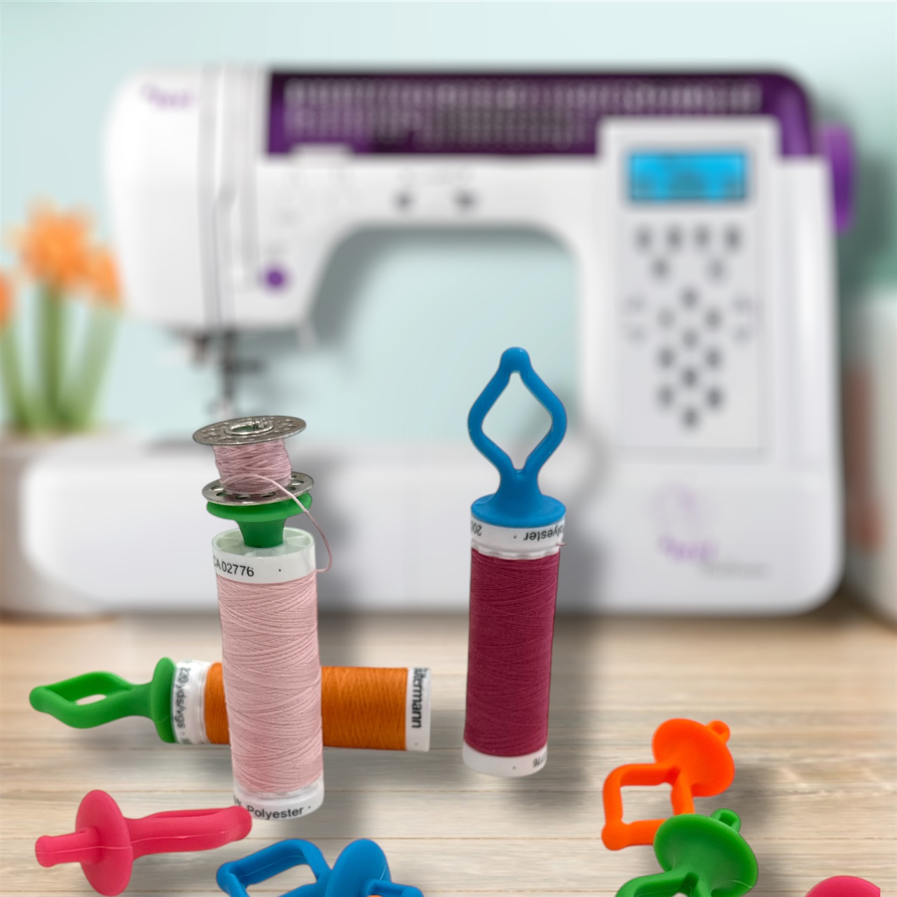 Mit den Bobbinis können Sie einfach die Unterfadenspule auf Ihr Nähgarnröllchen aufstecken und haben somit Nähfaden & Unterspule immer passend zueinander Griffbereit.