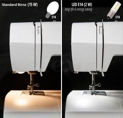 Glühbirne LED E14 für Haushaltsnähmaschinen mit Montageelement E14 (sog. "kleines Gewinde").